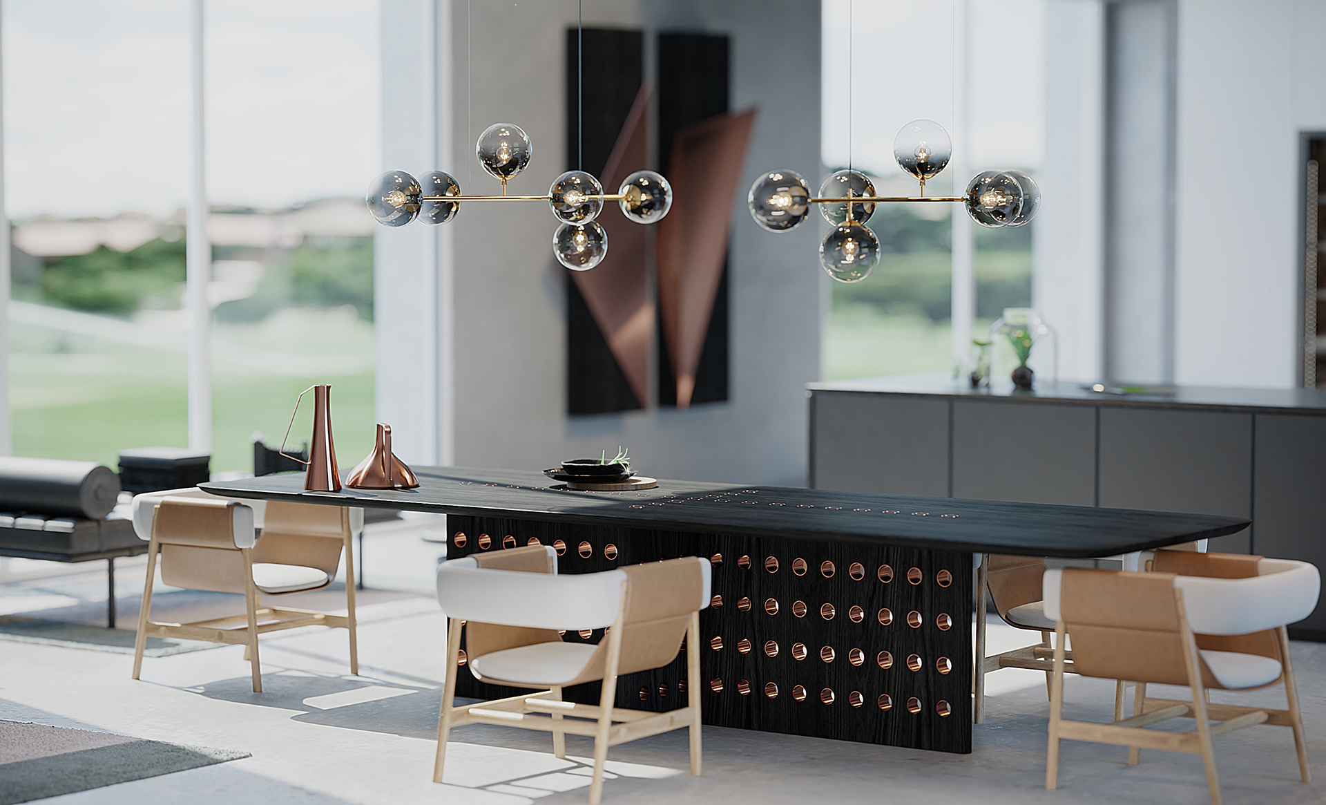 CGI INTERIOR PRODUCT DESIGN Client: Supplier Request Design ideation: A.Melusi.M Set Design: SLxD Products: OKHA dining table + Amawele Wall Art by Umongo x Melusi 4-Days Start to Finish.