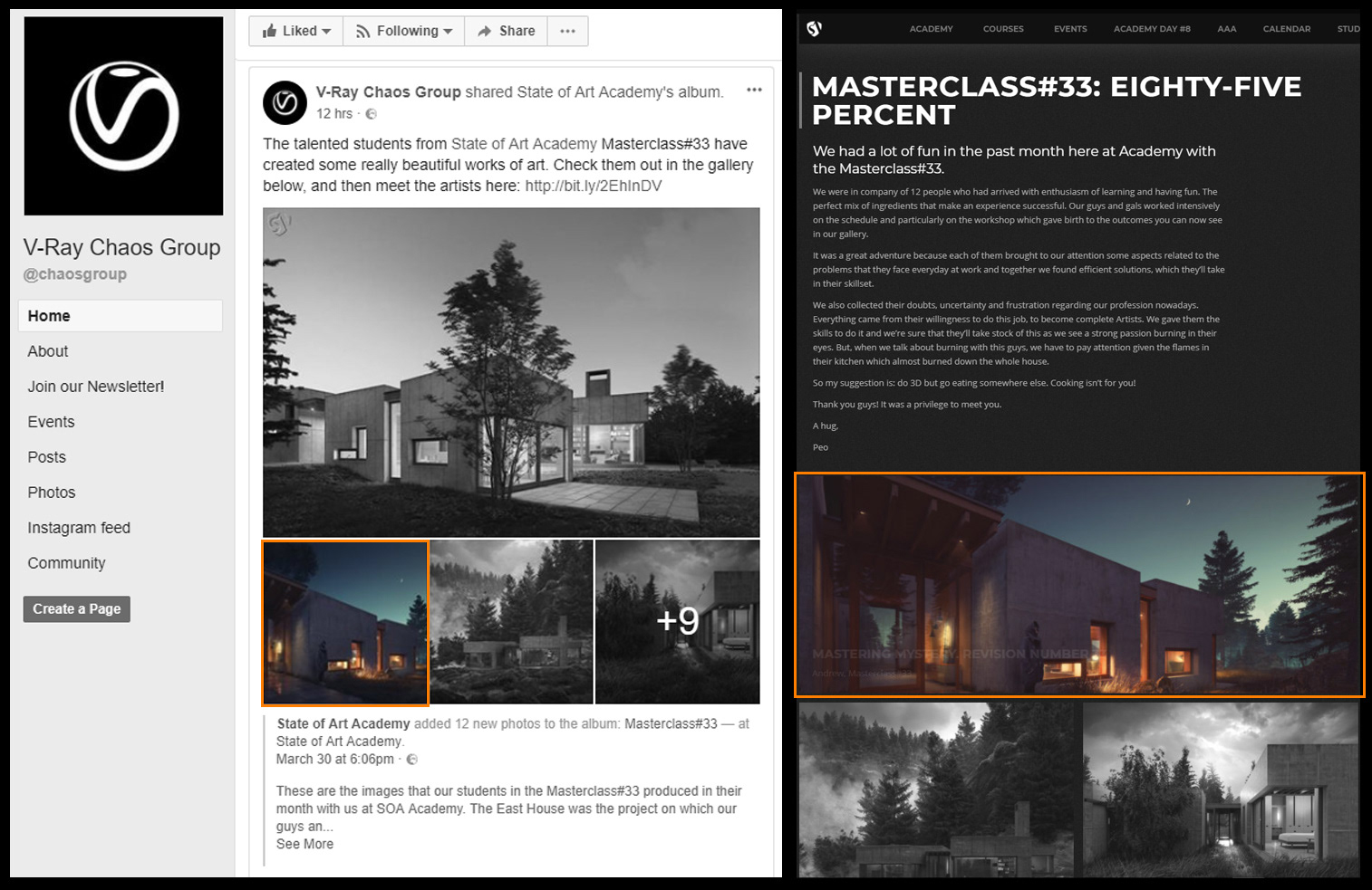 From Chaosgroup Vray: "The talented students from State of Art Academy Masterclass#33 have created some really beautiful works of art." From State of Art Academy ITALY: It was a great adventure because each of them brought to our attention some aspects related to the problems that they face everyday at work and together we found efficient solutions, which they’ll take in their skillset. From Andrew: An amazing experience with rigorous learning programs that bare plenty reward.