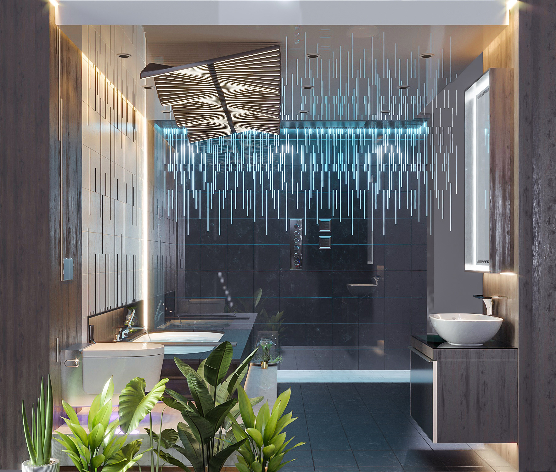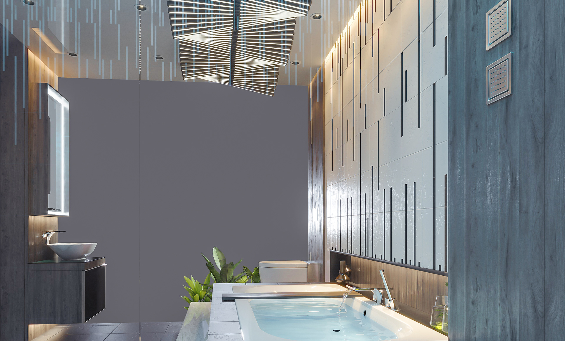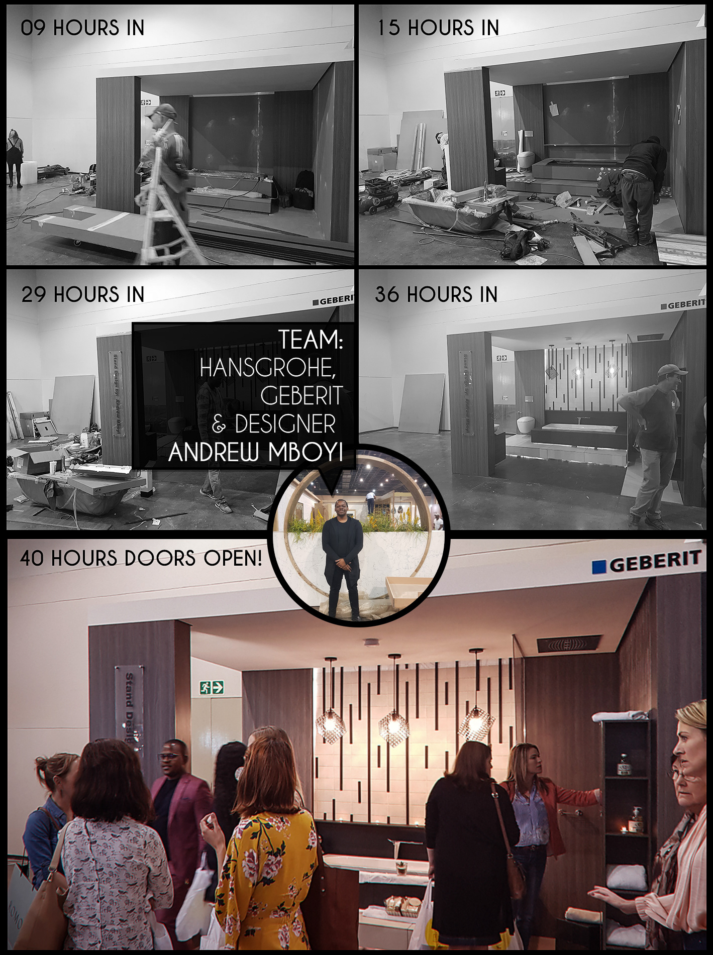 1 of 3 Stands built by Young designers in collaboration with Geberit and Hansgrohe. Andrew Mboyi - Designer. Sthunzi/Light - Architectural Media.